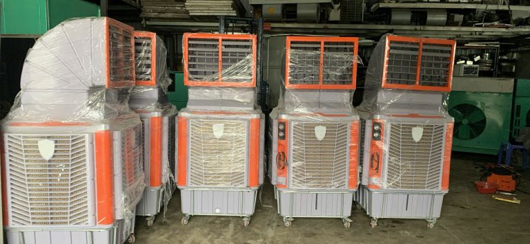 Cho thuê Quạt điều hoà công nghiệp 130L Thiết bị này sử dụng công nghệ làm mát bằng sự bay hơi của nước để giảm nhiệt độ không khí, phù hợp cho các không gian lớn như nhà xưởng, nhà hàng, hoặc sự kiện ngoài